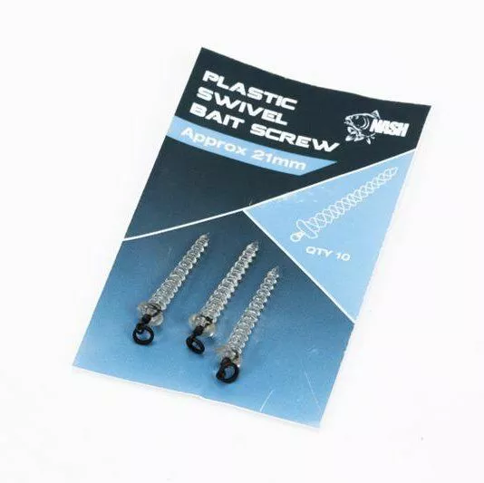 Plastic bait screws voorzien van een micro ringwartel om boilies, pop-ups, noten, foam en plastic aas vast te schroeven. Ideaal om snel van haakaas te wisselen zonder een boilienaald te gebruiken.